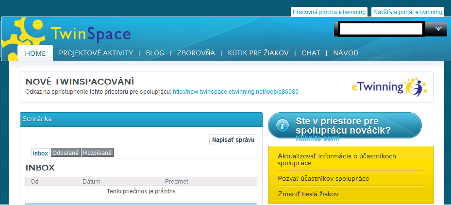 - je priestor, ktorý získate po zaregistrovaní a schválení Vášho projektu. Na rozdiel od Desktopu, ktorý je len jeden, môžete mať toľko TwinSpace-ov, do koľkých projektov eTwinning ste práve zapojení. TwinSpace je priestor, ktorý si vytvárate sami podľa potrieb Vášho projektu, je to bezpečný priestor pre spoluprácu a komunikáciu tak Vás pedagógov, ako aj Vašich žiakov. Len vy sami rozhodujete, ktoré časti TwinSpace-u budú prístupné aj pre verejnosť a ktoré budú súkromné len pre Vás a projektových partnerov.